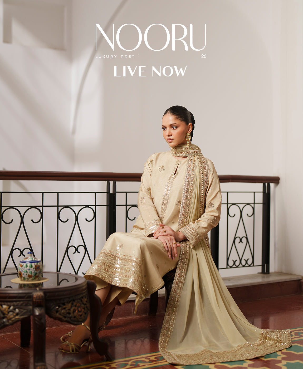 Crafted with elegance, this ensemble features a flowy chiffon frock adorned with delicate floral patterns,...